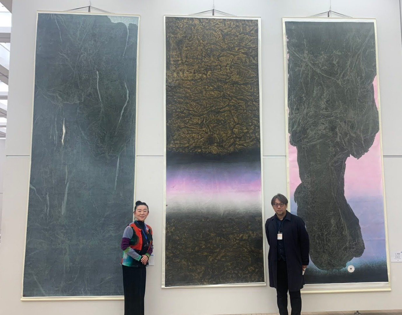 今回は国立新美術館という空間での個展形式であるため、高さ約4メートル、幅138〜142センチメートルに及ぶ現代水墨画の大型作品を3点、特別に制作・準備いたしました。
